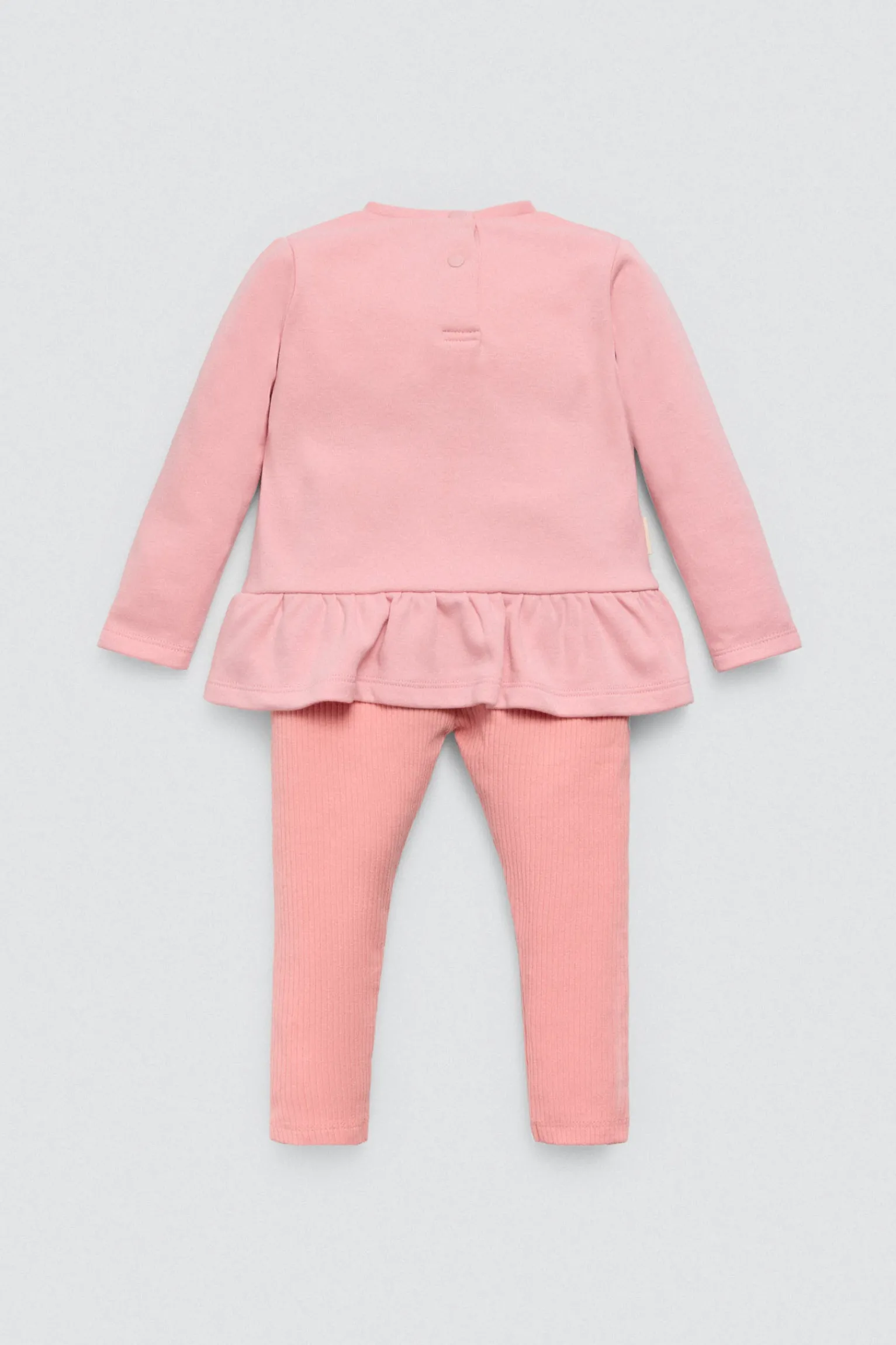 Set de bebé compuesto por camiseta, pantalón y bandan. Interior afelpado. Diseño de la colección Candy Circus en tono rosa pastel con detalles dulces. Algodón natural, ideal para regalar o para los primeros meses.
