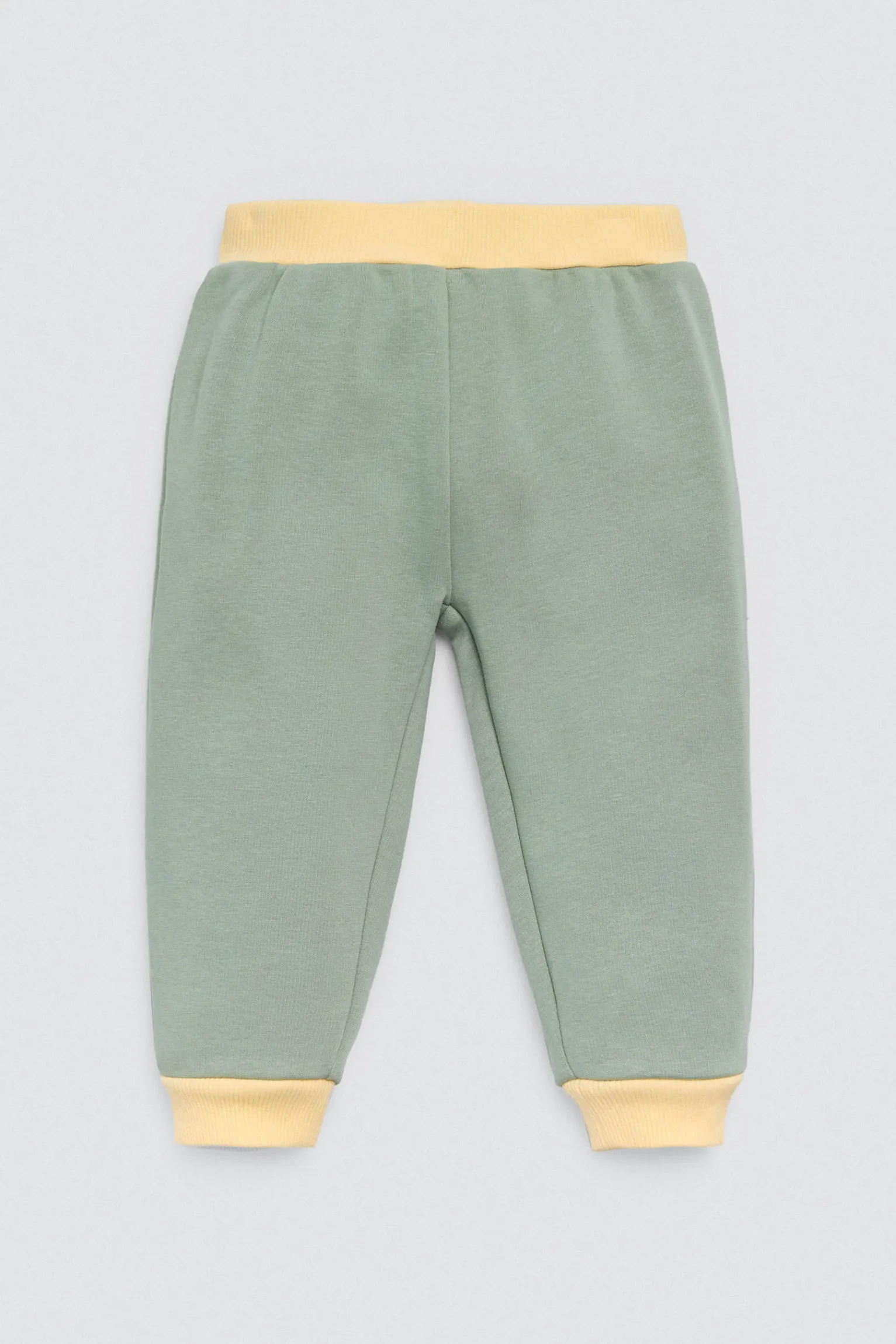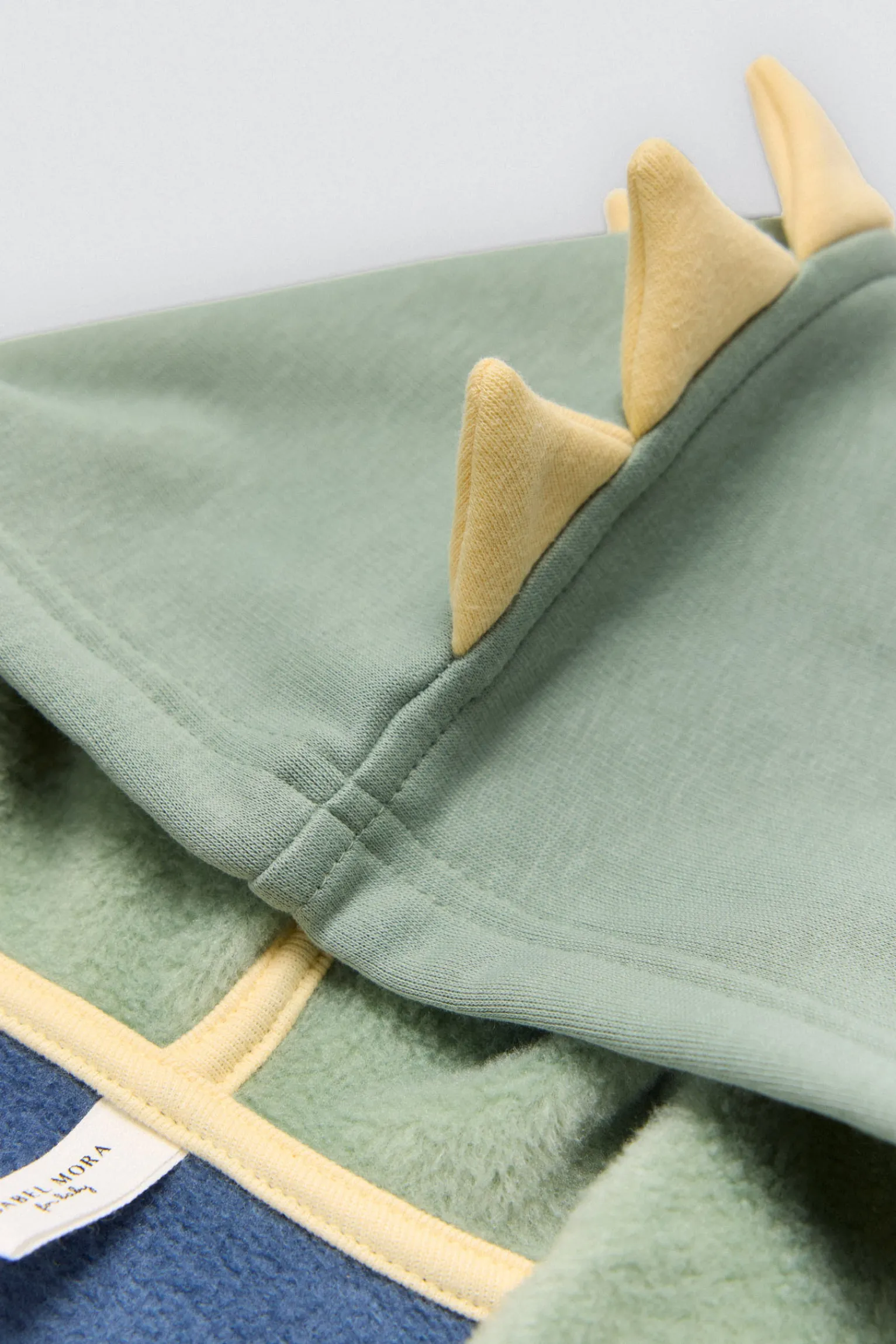 Conjunto de bebé con chaqueta de cremallera y pantalón largo afelpado. Estampado divertido de dinosaurios. Ideal para días de frío y perfecto para vestir y desvestir fácilmente.