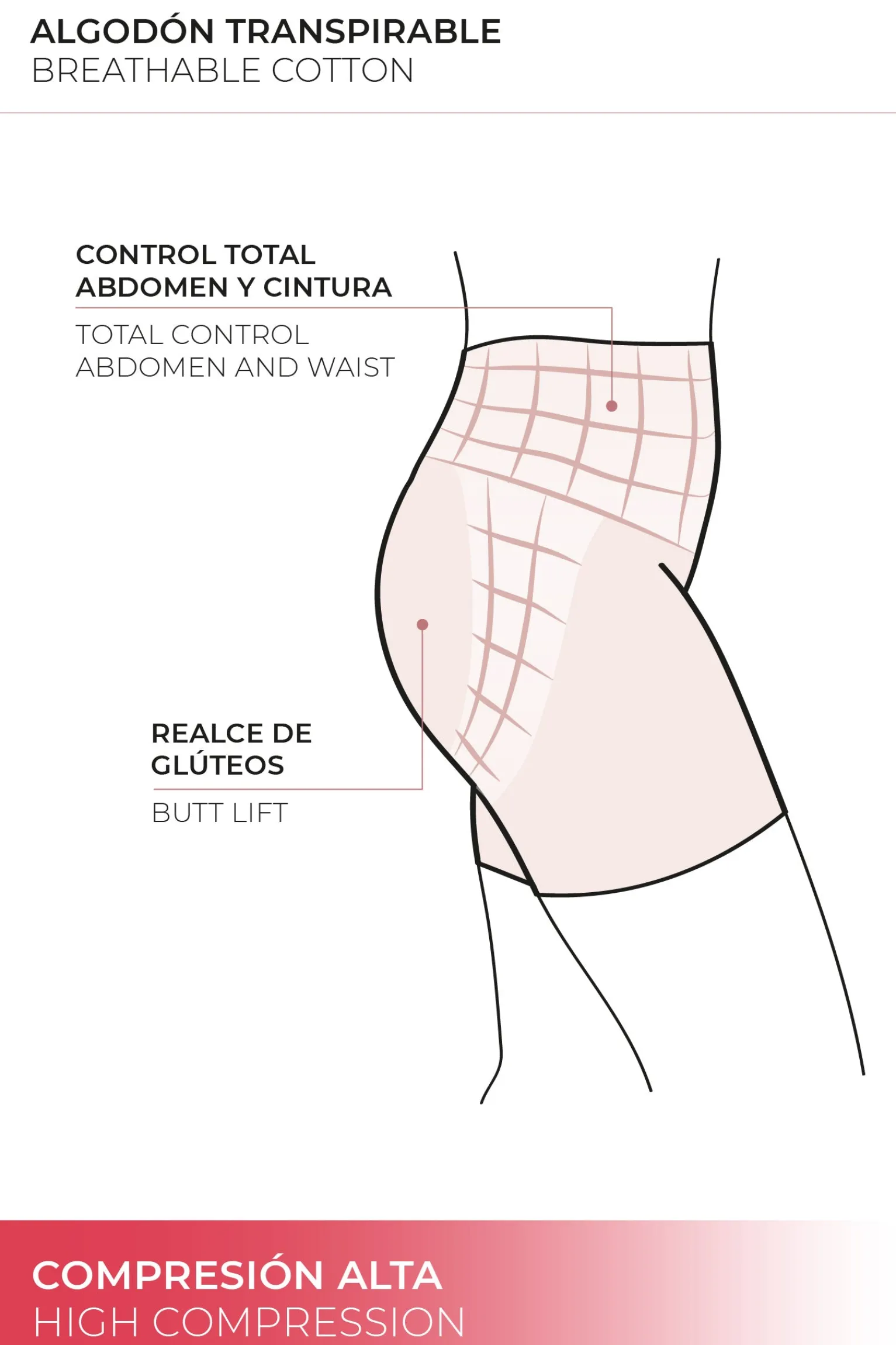 - Diseño de cintura alta: proporciona una cobertura favorecedora y se mantiene discreto bajo la ropa.