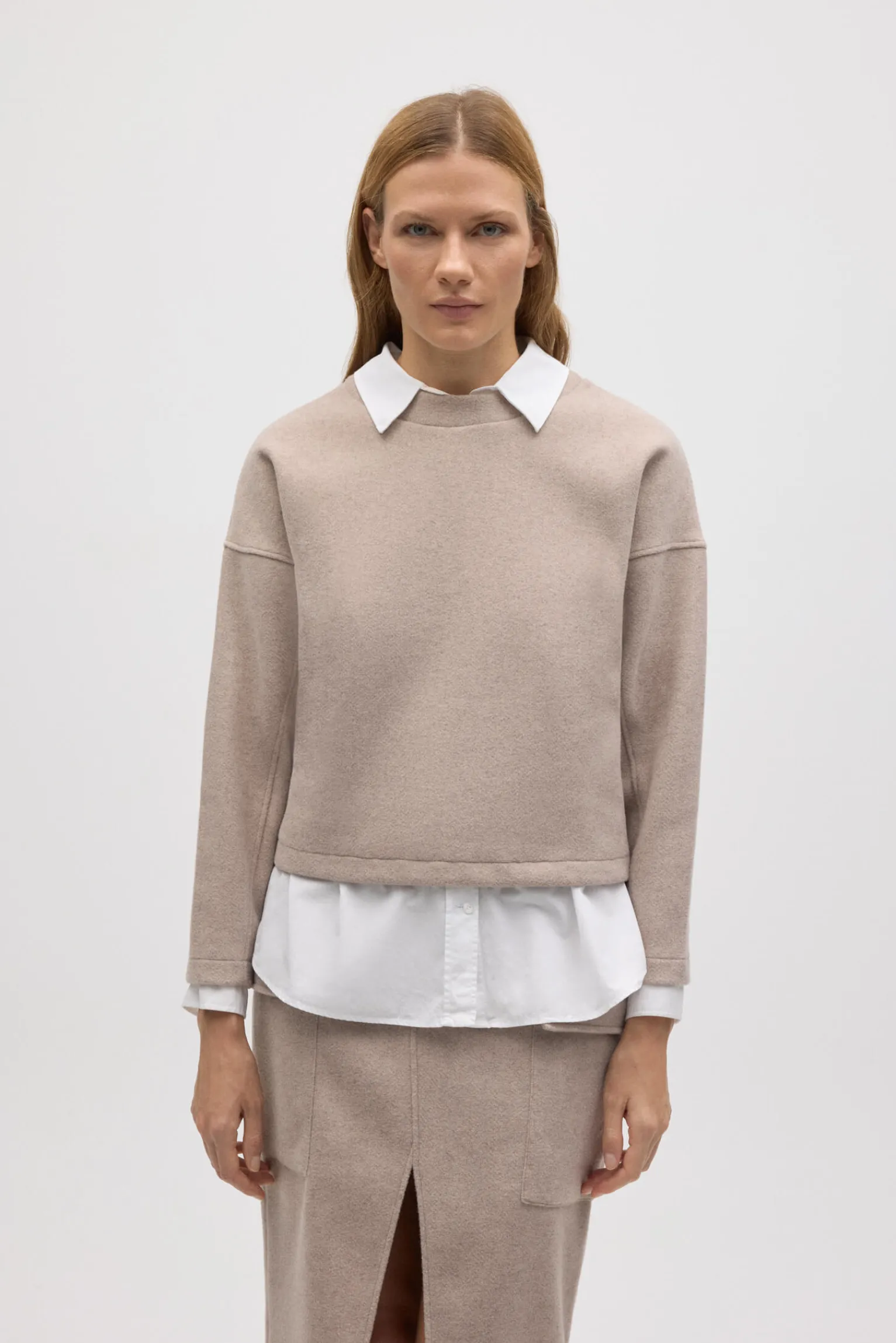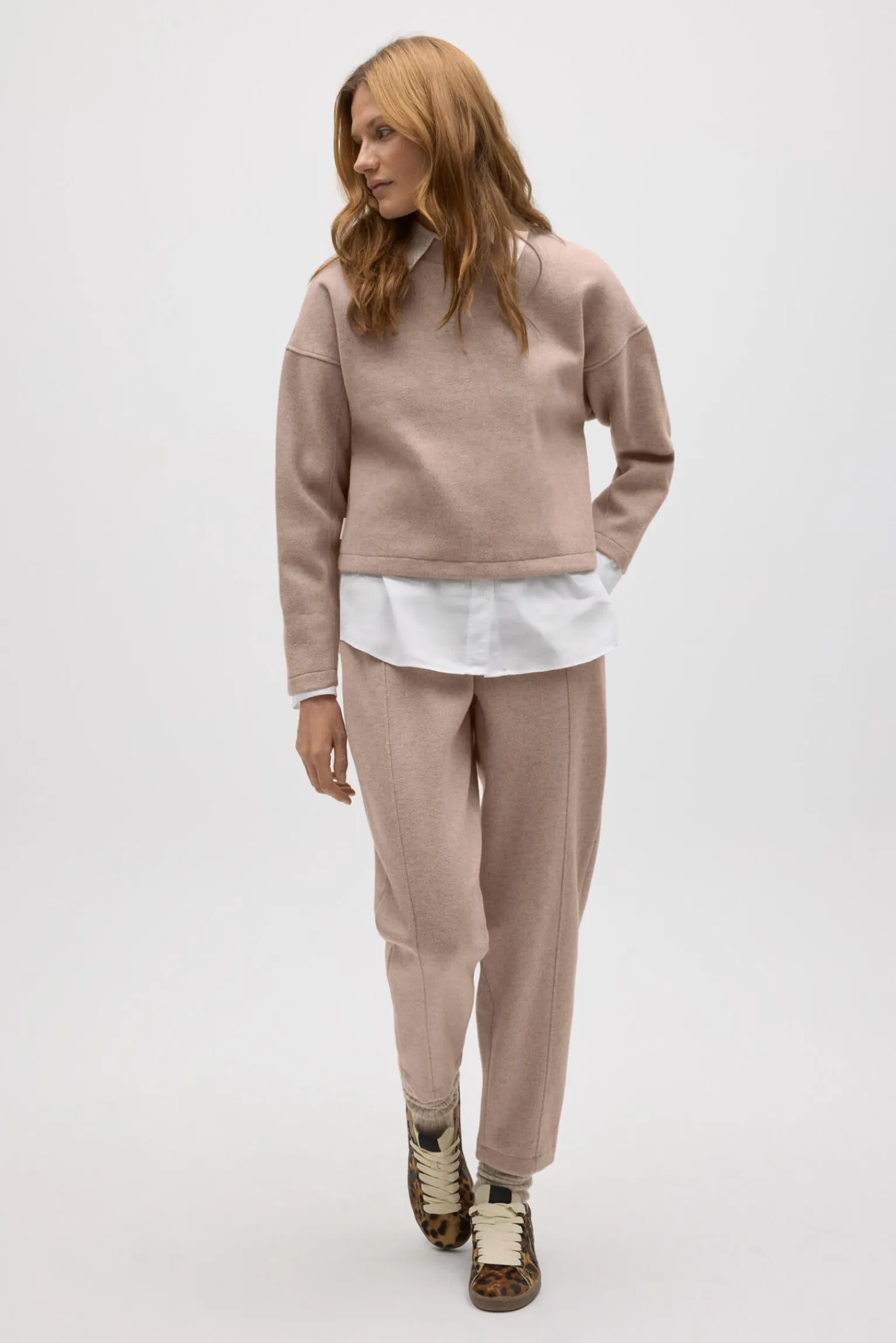 Jersey con un diseño estructurado y elegante que se adapta tanto a momentos de relax como a looks más urbanos. Este jersey de cuello redondo es perfecto para mantenerte abrigada sin perder el estilo.