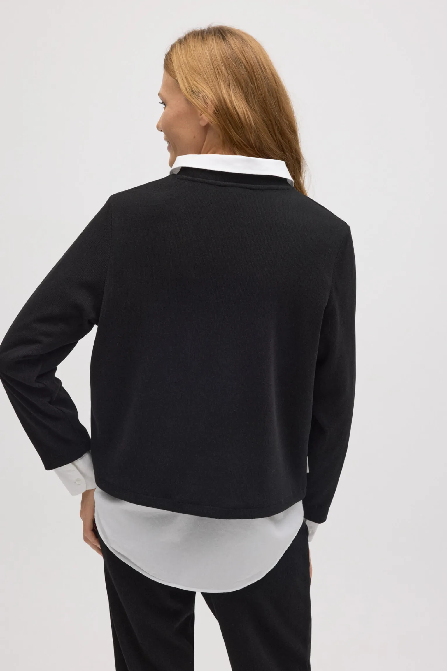 Este jersey cálido de cuello redondo es la prenda versátil que no puede faltar en tu armario. Con su diseño sencillo y elegante, es ideal para combinar con una camisa debajo y crear looks tanto informales como más sofisticados. Perfecto para mantenerte abrigada sin perder el estilo, es la opción ideal para cualquier ocasión.