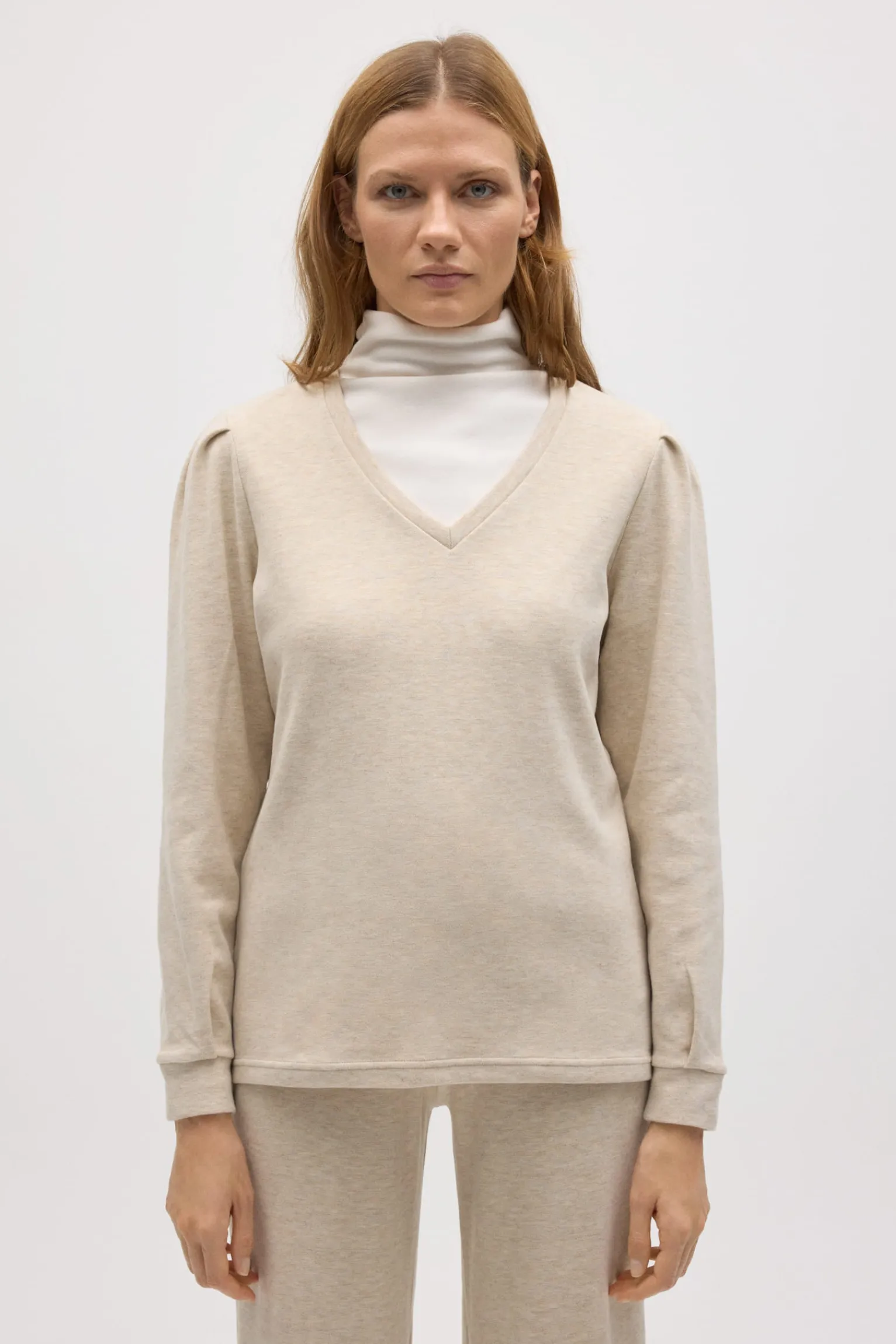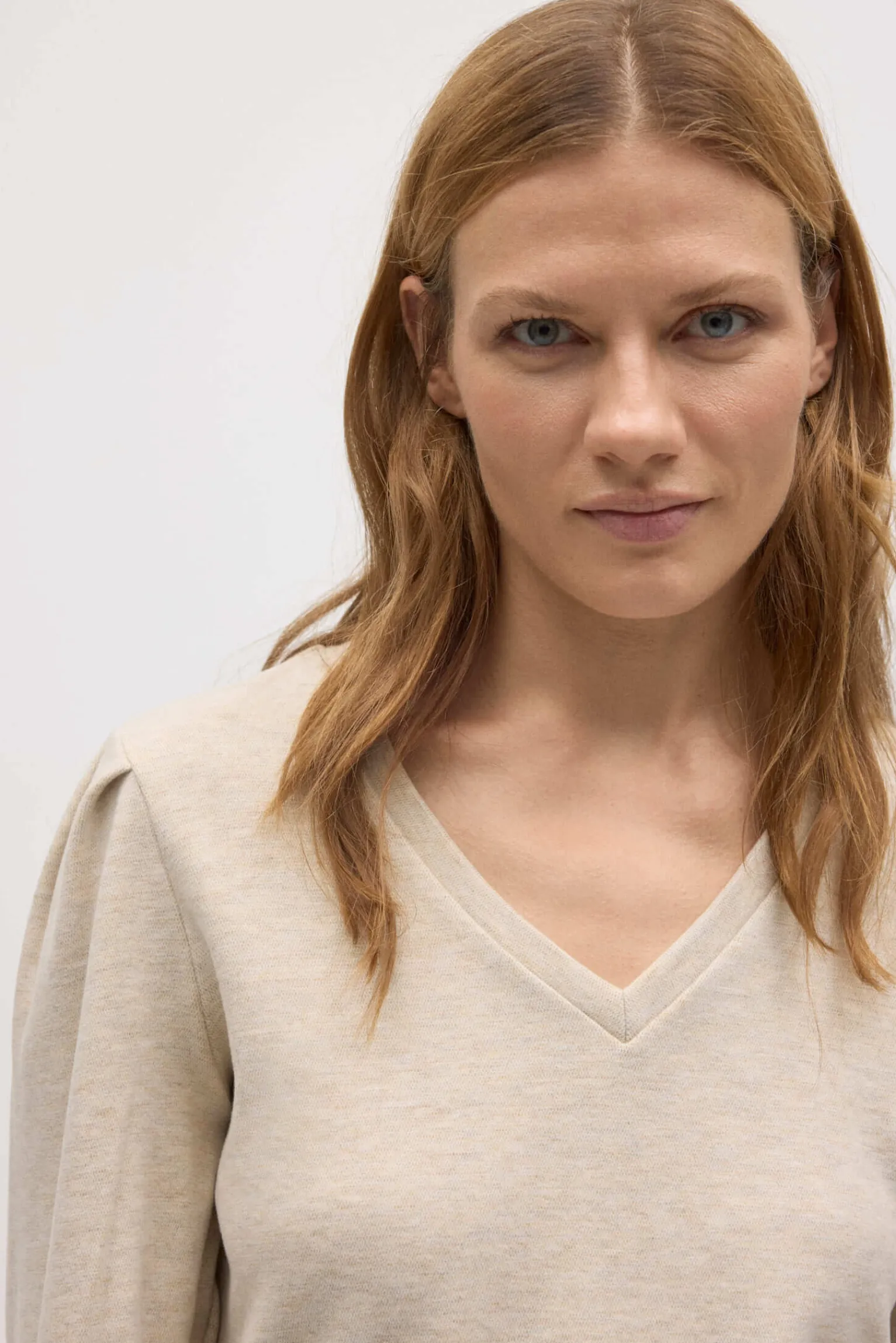Jersey extra cómodo detalle hombros beige. Características