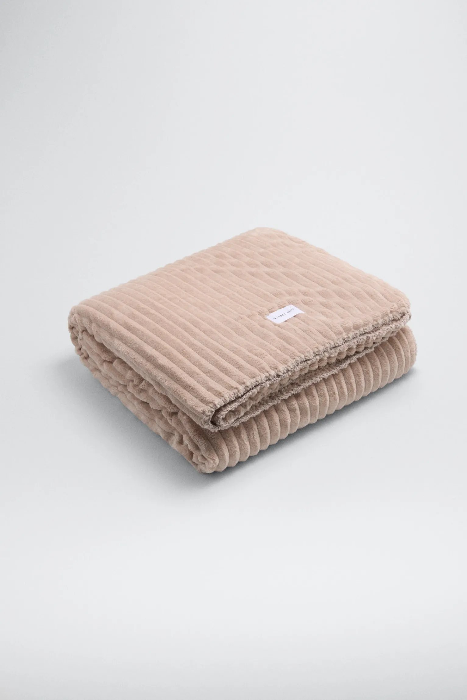 Una manta que combina suavidad y calidez: un lado con un efecto canalé de pelo suave y el otro con un cálido borreguito. Perfecta para brindarte el máximo confort durante los días fríos.