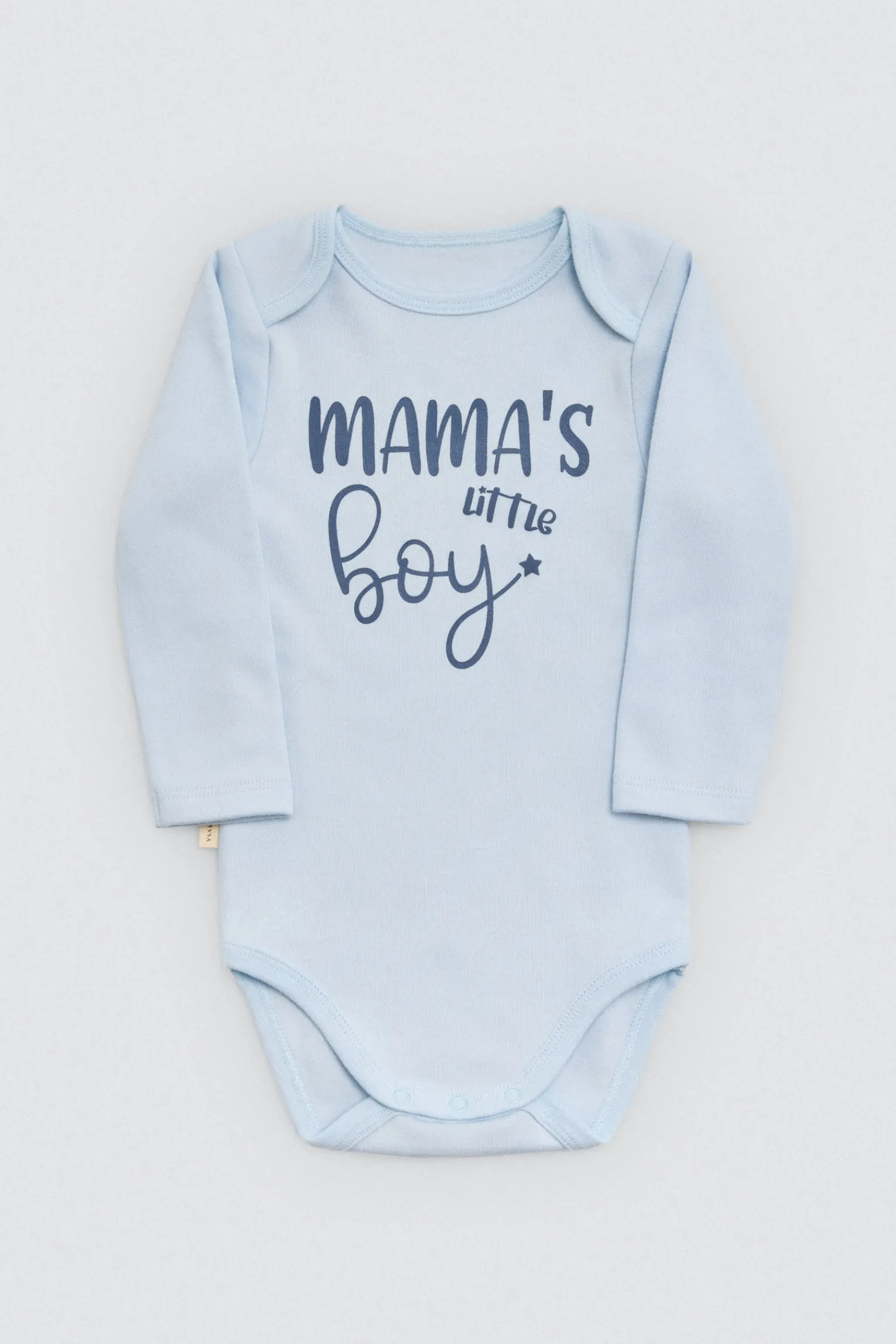 Set de 2 bodies de manga larga para bebé niño con interior afelpado. Tejido de algodón natural con mensajes estampados. Suaves, cómodos y perfectos para uso diario o regalar.