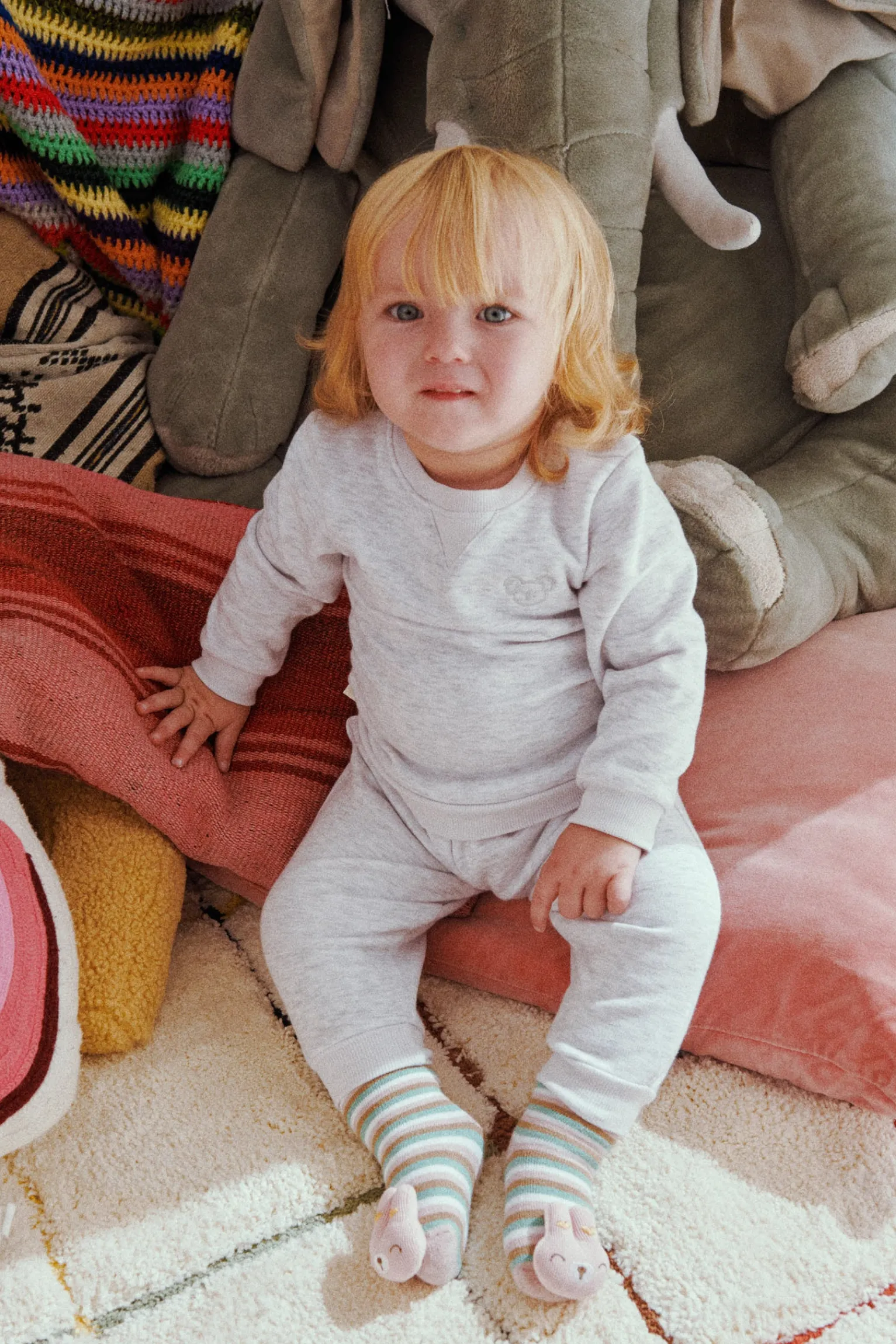 Pack de 2 pares de calcetines para bebé niña. Calcetines térmicos y estampados con aplique sensorial de sonajero. Puño antipresión.