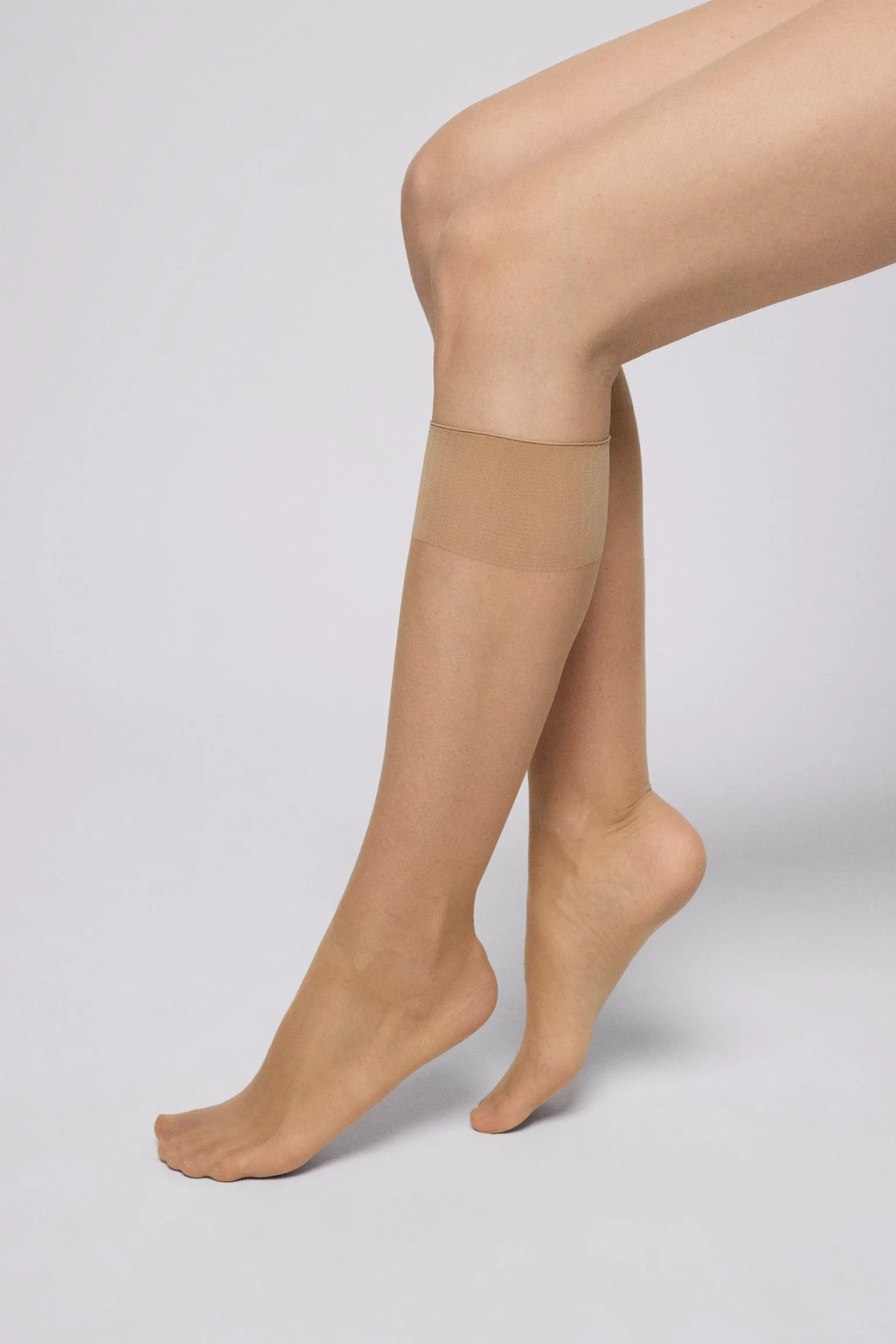 Pack de 2 medias por debajo de la rodilla de 10 Deniers. Color natural.