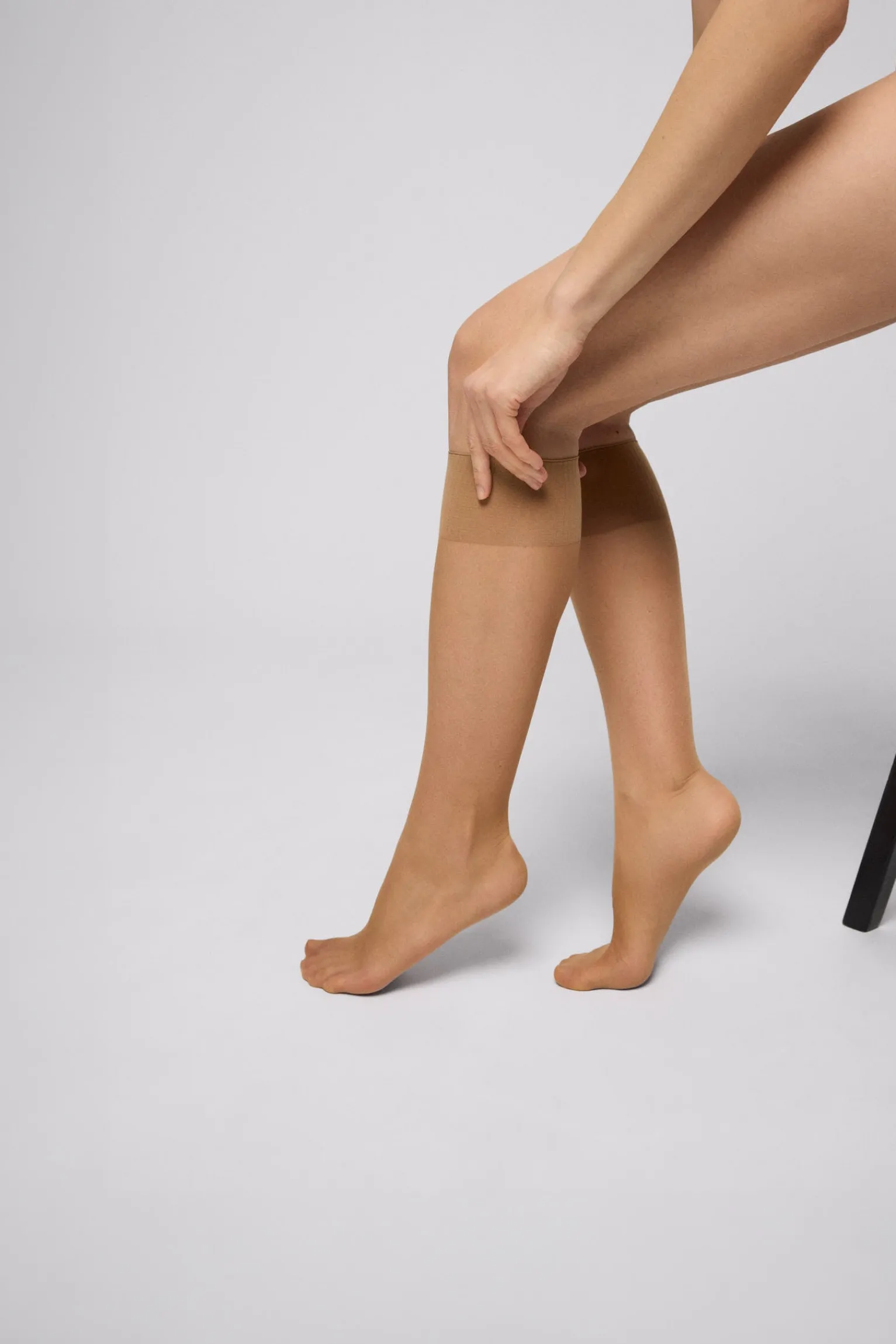 Pack de 2 medias por debajo de la rodilla de 10 Deniers. Color marrón.
