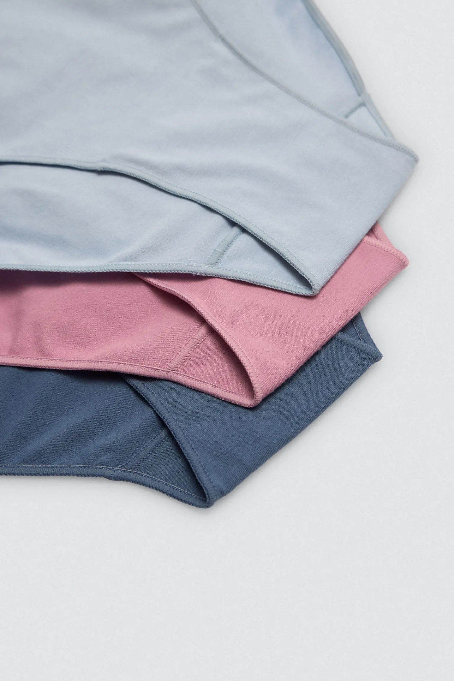 Pack de 3 bragas midi básicas de algodón para mujer. Incluye una de cada color.