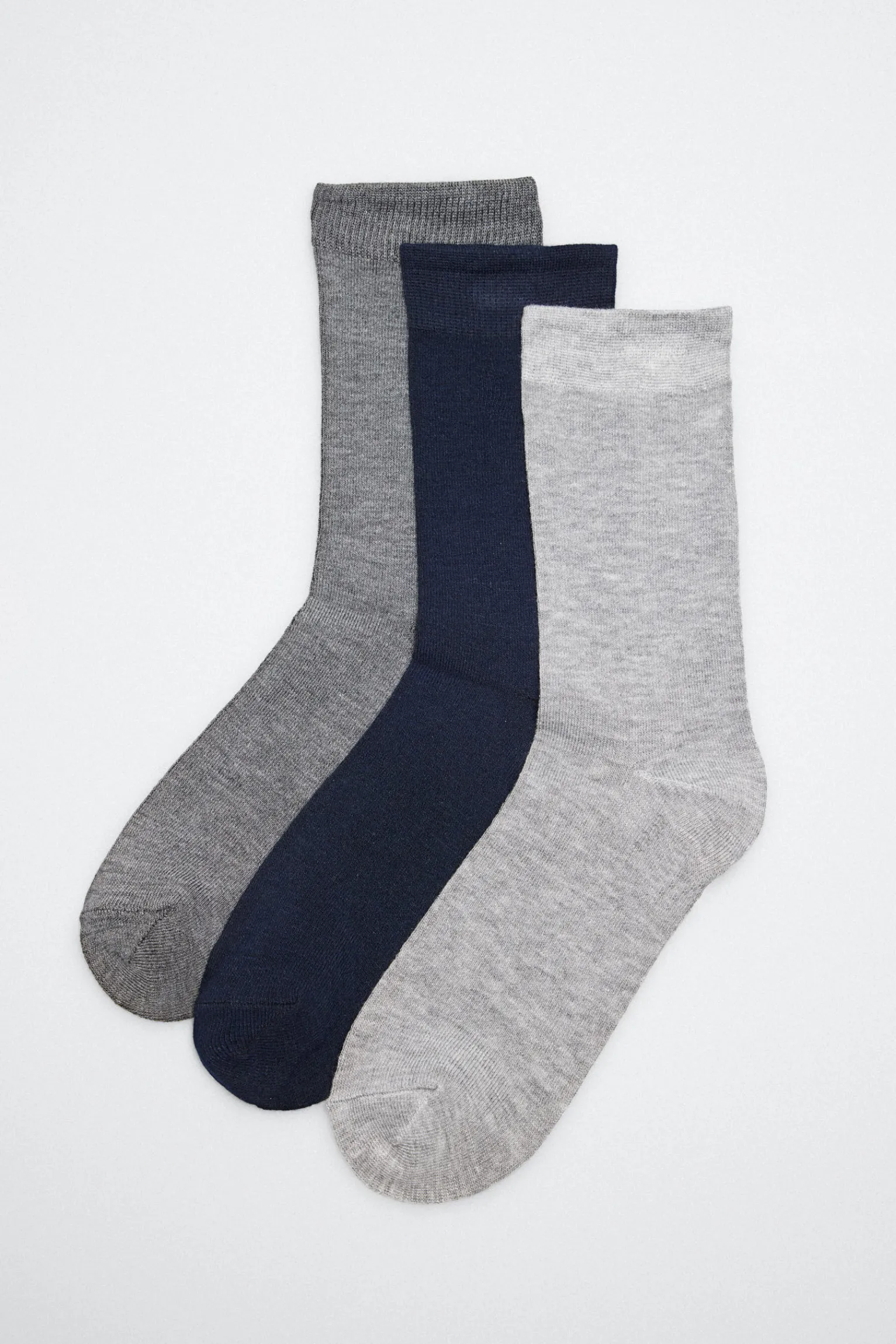 Pack de 3 pares de calcetines para mujer de varios colores. Incluye un par de cada color. Puño antipresión. Confeccionados con tejido de bambú, una fibra natural transpirable, antiolores, suave y cómoda.