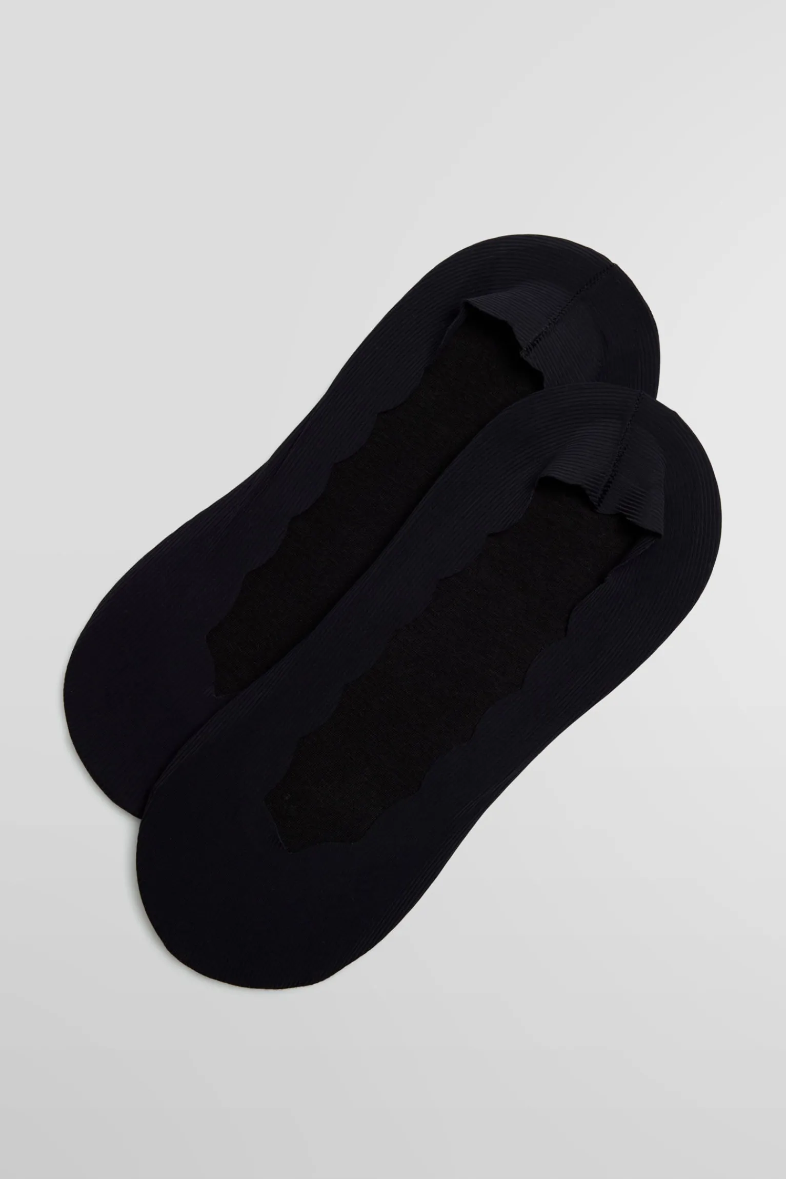 Pinkies invisibles de algodón para mujer. Diseño liso con banda de silicona para mejor ajuste al pie. Diseño sencillo y elegante con borde ondeado.