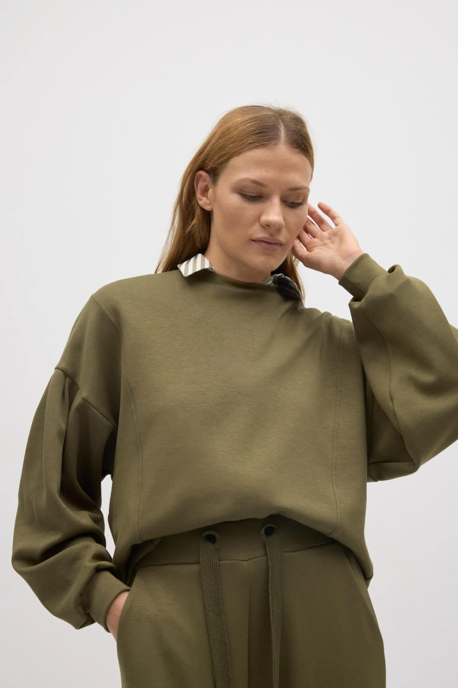 Sudadera mangas abullonadas fluida. Características
