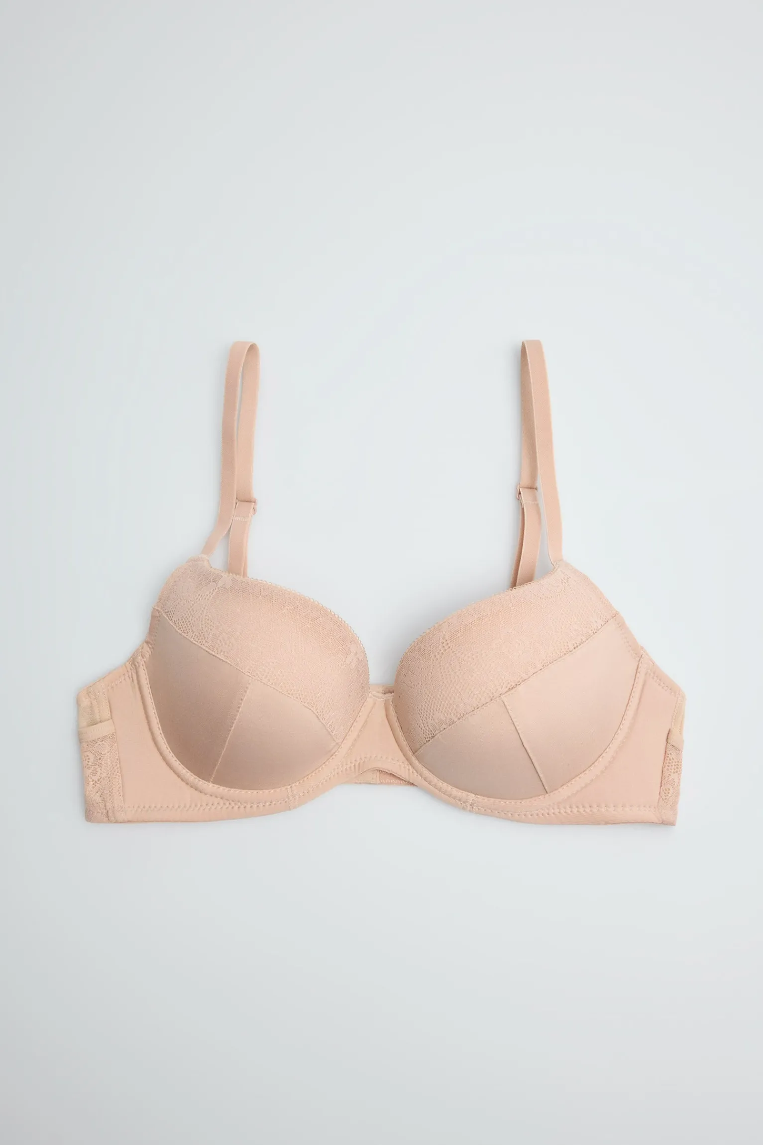 Nueva Colección Special You. Sujetador con cierre hasta 4 posiciones para mayor sujeción e interior forrado en microfibra. La base de las copas incorpora segmentos en espuma para un mayor confort. Su diseño espalda anatómica junto con los tirantes anchos contribuyen a una mayor sujeción y comodidad. Lo detalles en encaje se prolongan a toda la espalda. Elige una braguita de la colección Special You y completa tu set lencero. Color nude.