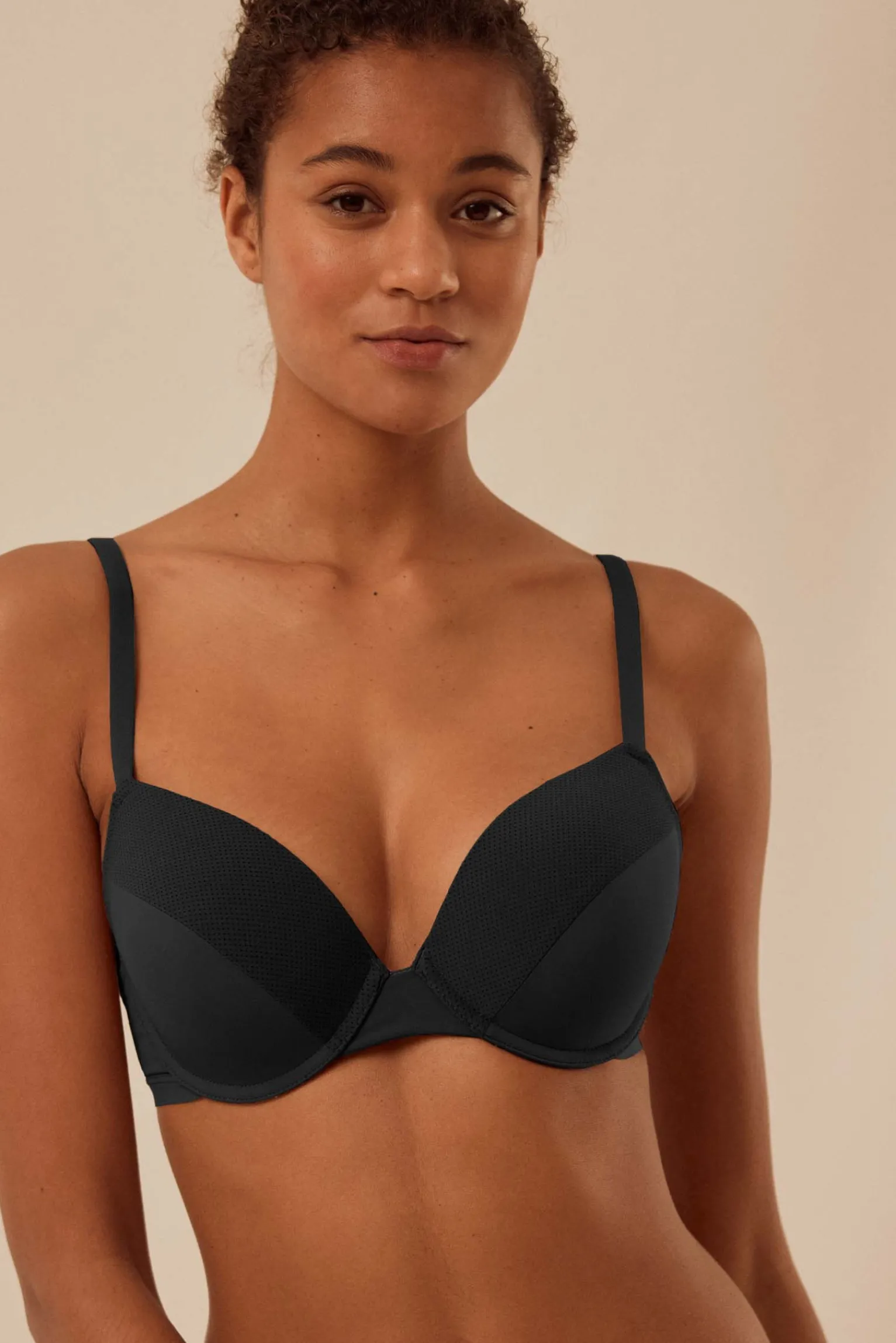 Sujetador con aros y relleno de microfibra. Características