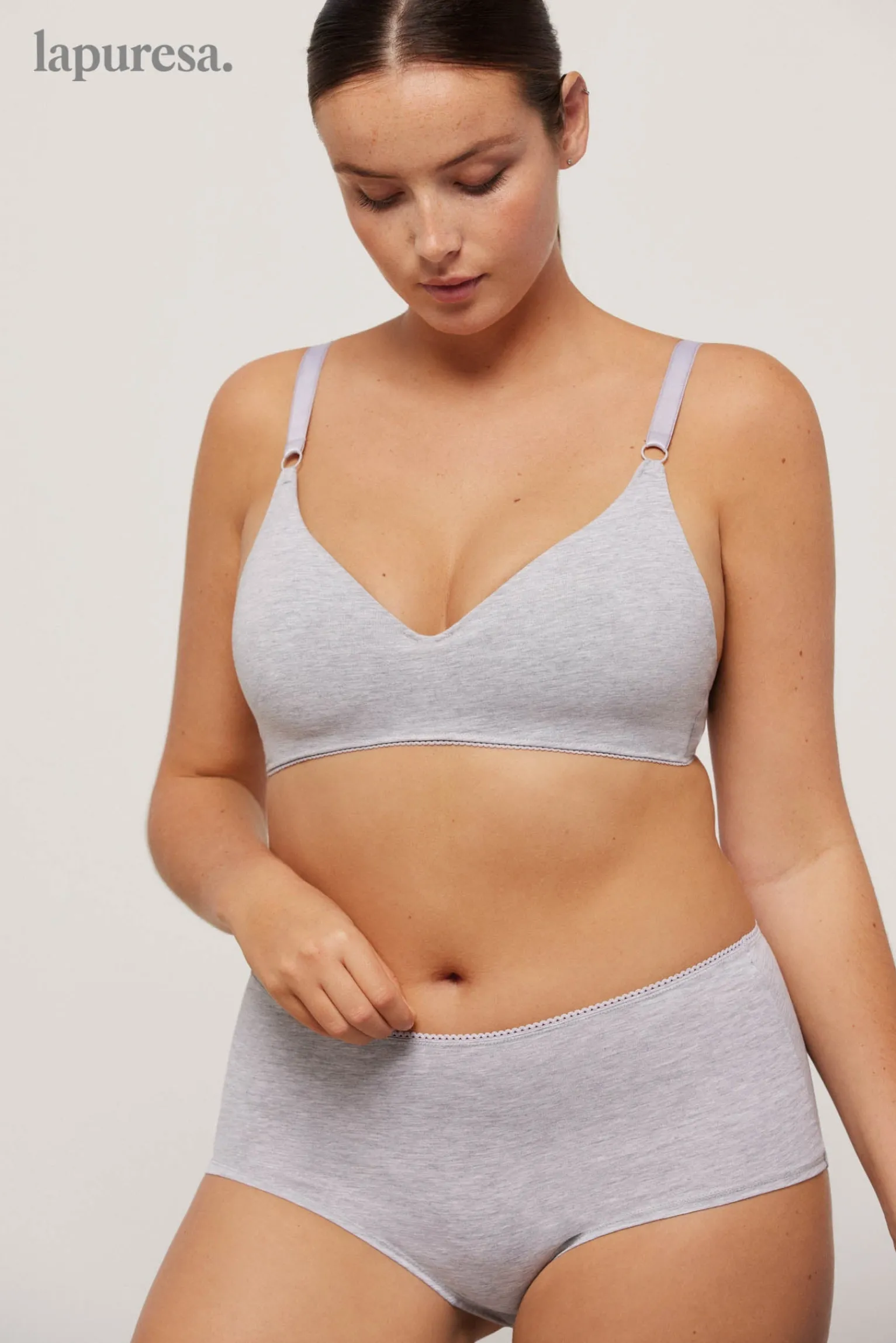 Sujetador push-up sin aros Lapuresa, lencería sostenible que eleva tu confianza a través de la comodidad. Para todas aquellas que se declaran a favor de la libertad en su estilo de vida y en su ropa íntima, el sujetador push- up sin aros de nuestra colección de prendas sostenibles está hecho para mujeres naturales que se cuidan para sí mismas.