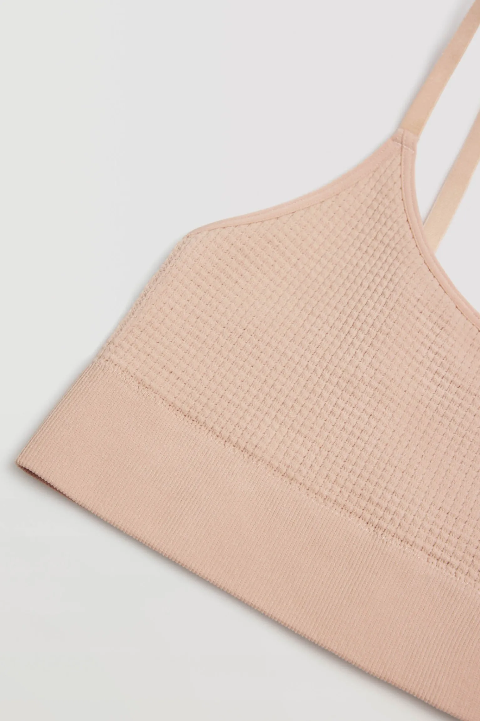 Sujetador tipo top sin aros ni costuras. Color nude. Características