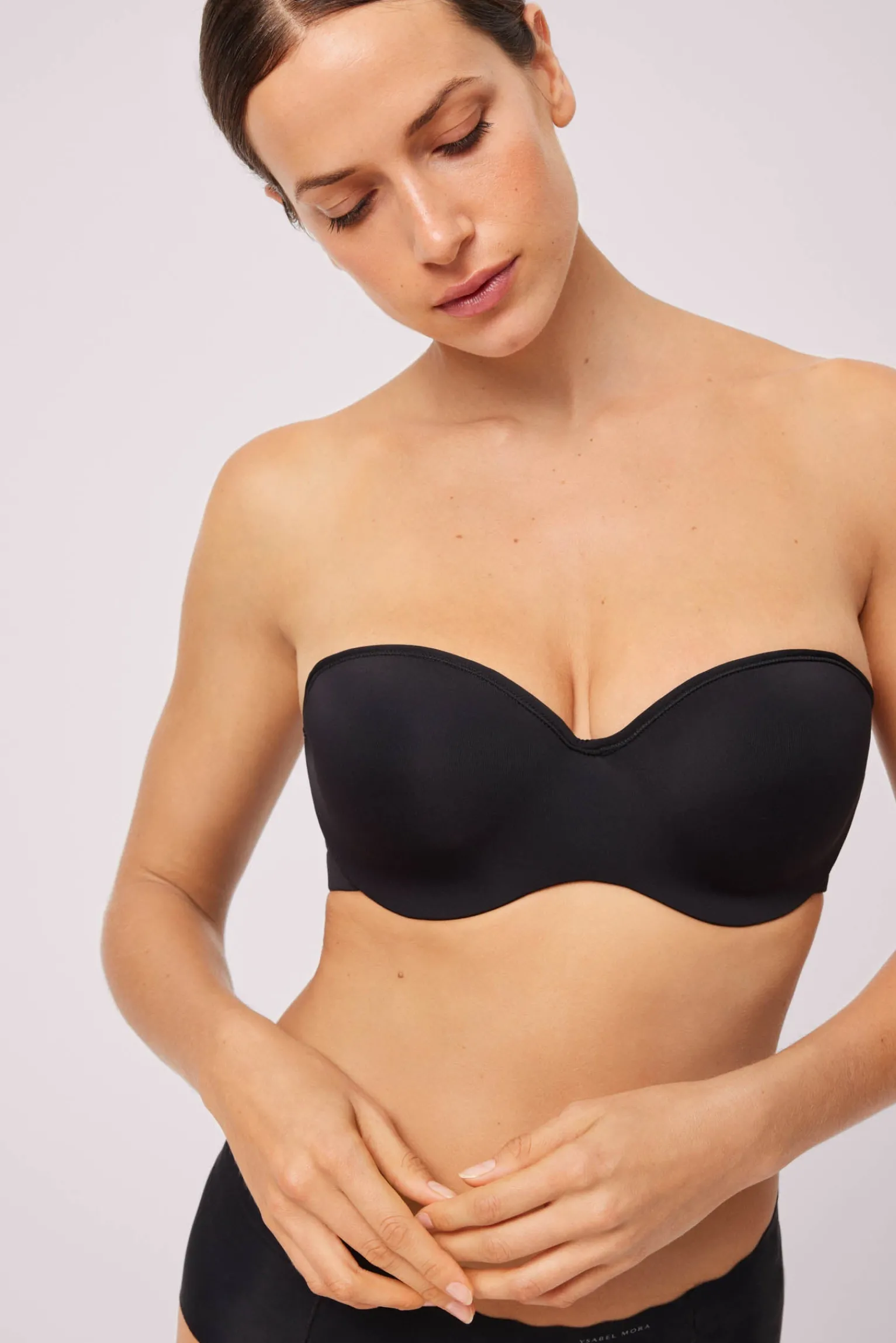 Sujetador sin tirantes con aro sin relleno. Espalda con espuma para mayor confort y para que no marque en la ropa. Multiposición gracias a sus tirantes removibles.