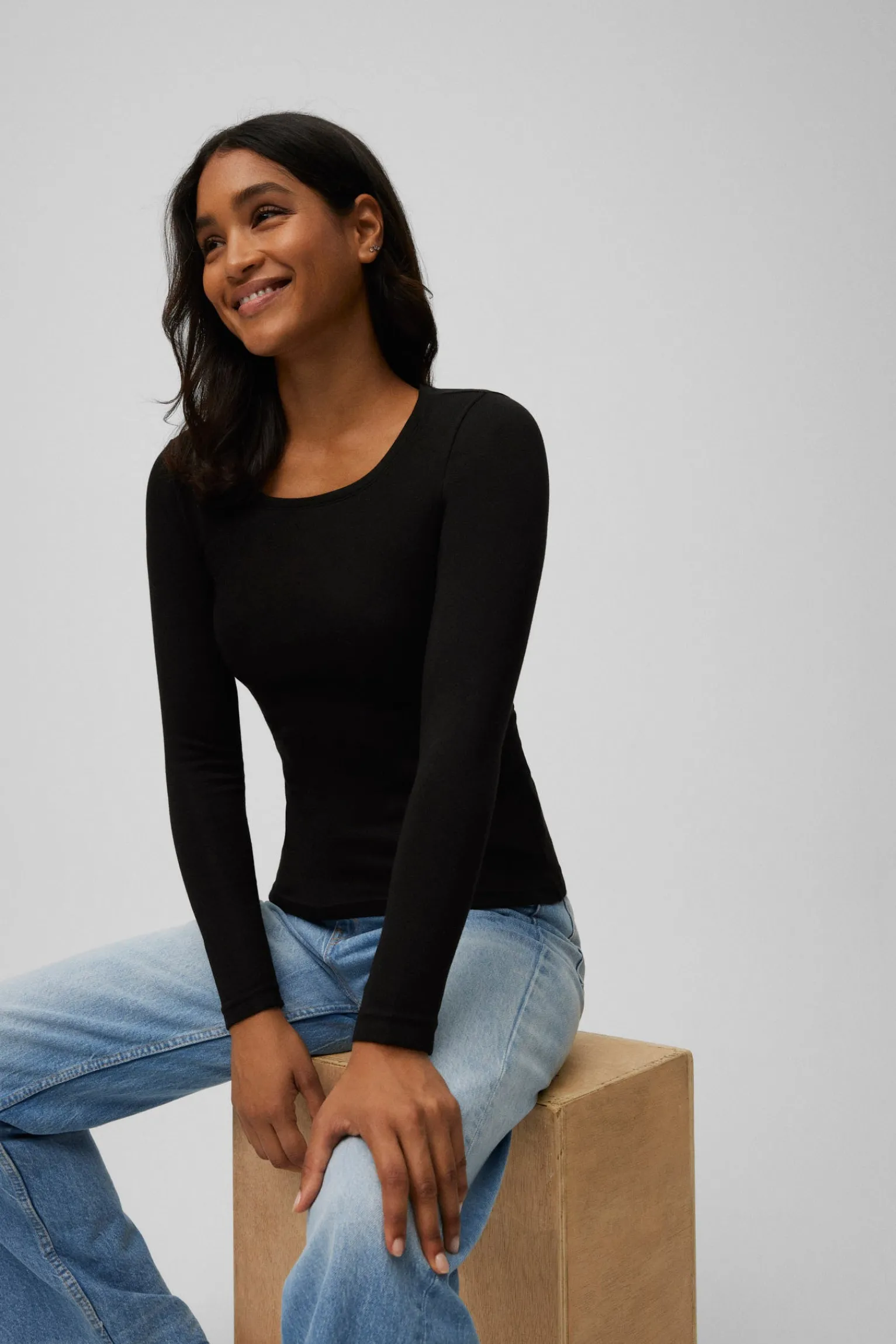 - Diseño de cuello redondo y manga larga para mayor cobertura y confort.