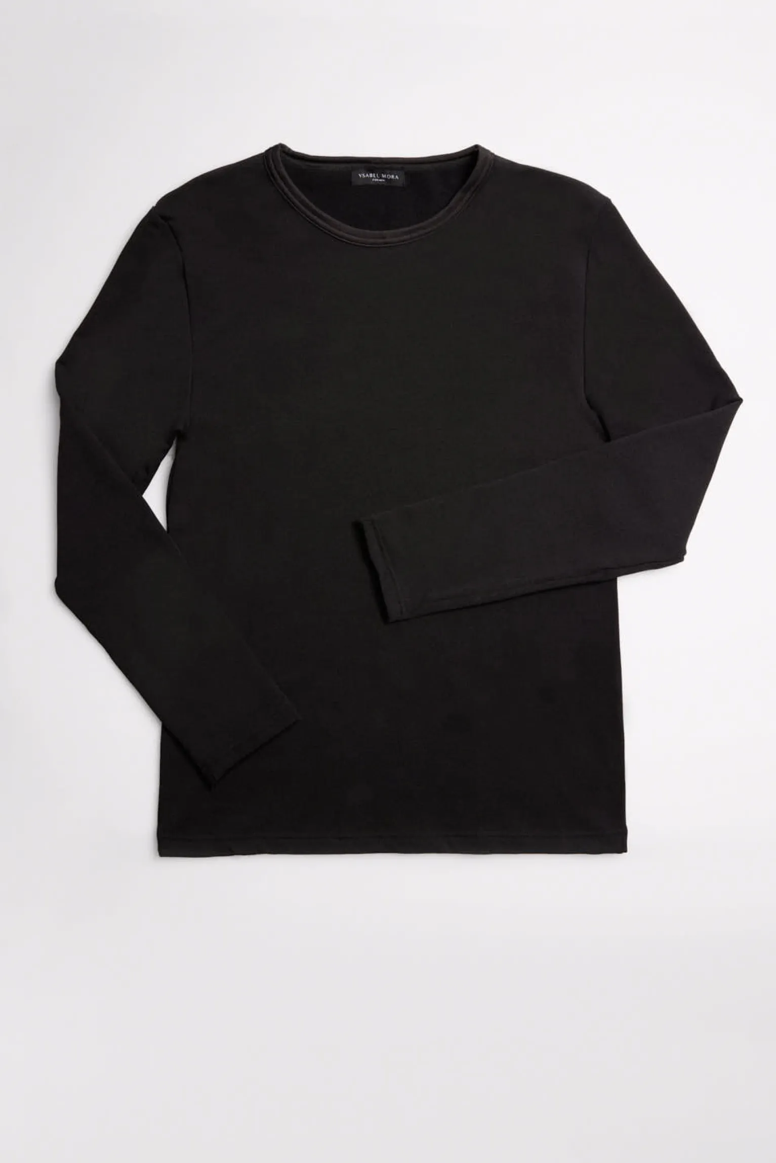 - Manga larga y cuello redondo para un ajuste clásico y versátil.