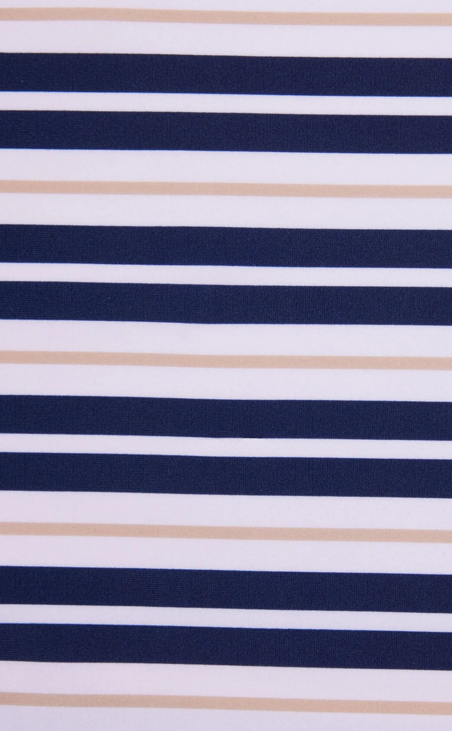Top de bikini reductor de capacidad diseñado para ajustarse a la perfección. Gracias a su diseño y patrón, consigue evitar la proyección del pecho hacia delante. Su detalle estampado de rayas en la parte superior añade un toque elegante y sofisticado.