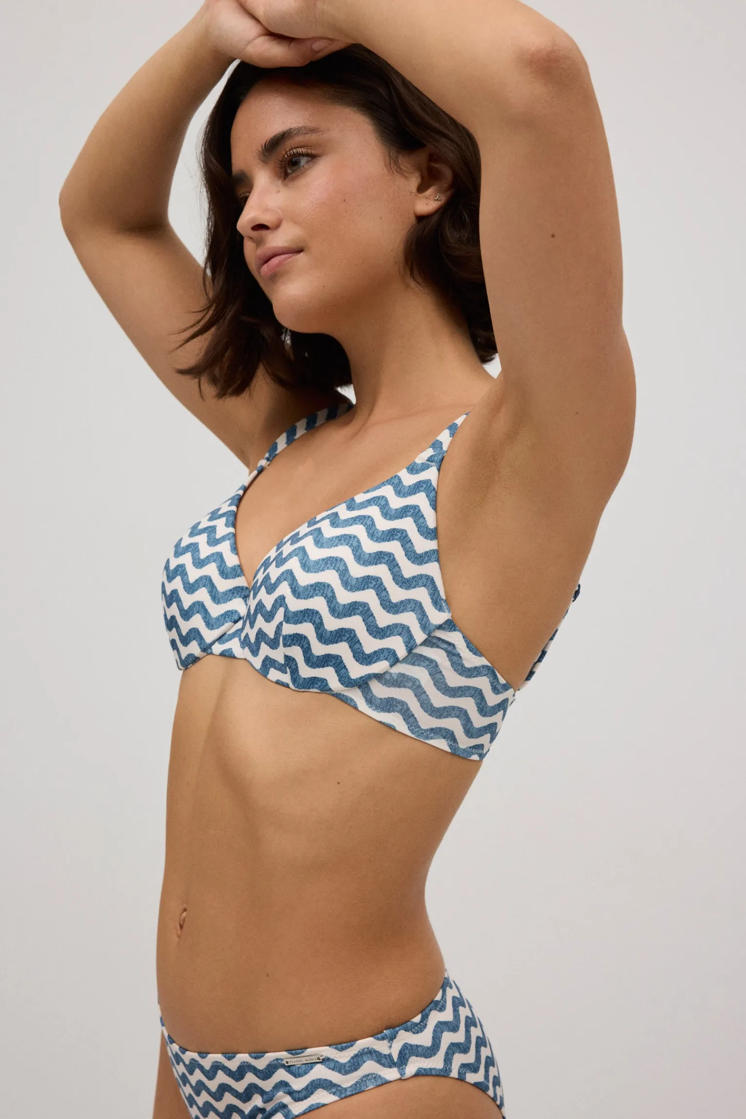 Top bikini ondas tirantes anchos copa C con estampado de ondas en marino. Características